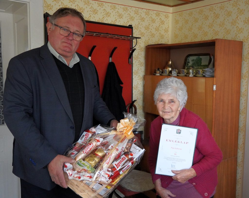 Szépkorú hajdúhadházi polgárunkat, Pap Gáborné Kis Ilonát 90. születésnapja alkalmából Szőllős László alpolgármester köszöntötte, s adta át a miniszterelnöki emléklapot, valamint Hajdúhadház Város Önkormányzatának ajándékát és jókívánságait.