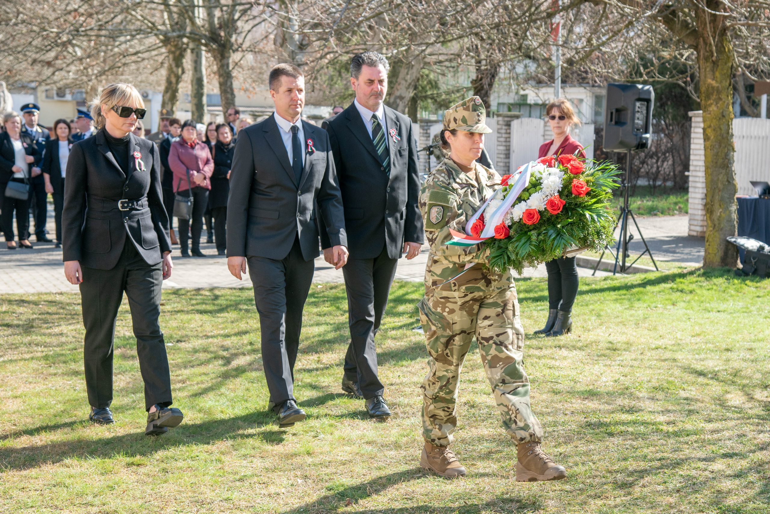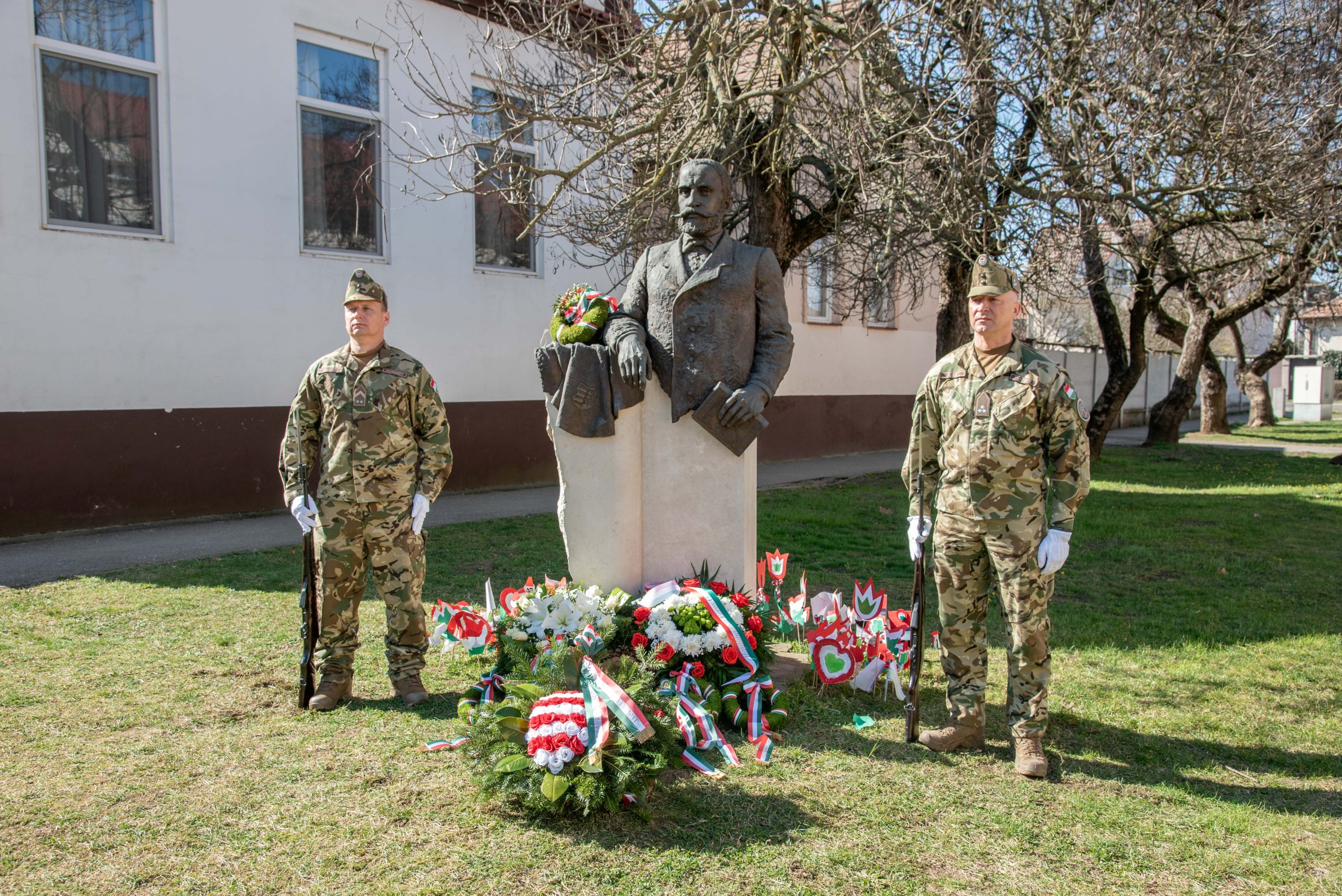 Az ünnepi beszédet követően katonai tiszteletadás mellett Hajdúhadház Város Önkormányzata, városi intézmények, valamint civil szervezetek képviselői koszorúkat helyeztek el Szilágyi Dániel szobránál.