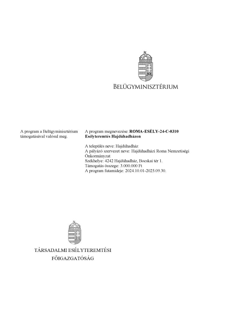 ROMA-ESÉLY-24-C-0310 Esélyteremtés Hajdúhadházon